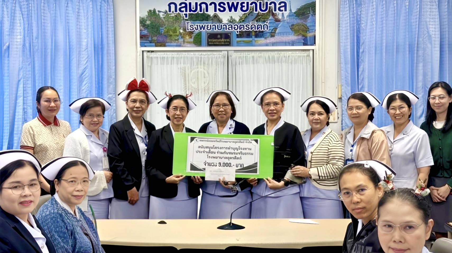 - สนับสนุนโครงการทำบุญโรงทานประจำเดือน ร่วมกับชมรมจริยธรรม โรงพยาบาลอุตรดิตถ์ จำนวน 6,000 บาท